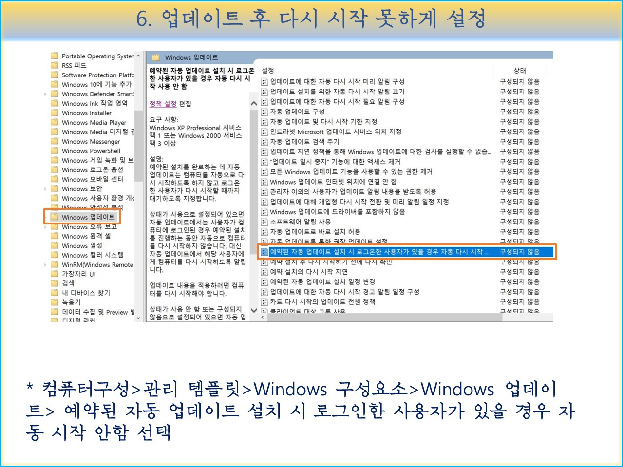 "컴퓨터구성>관리 템플릿>Windows 구성요소>Windows 업데이트>