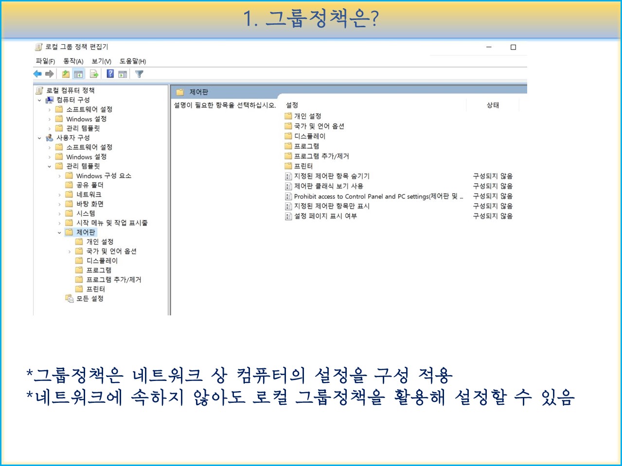 그래서 그룹정책은 회사나 학교의 컴퓨터를