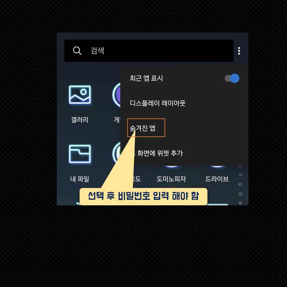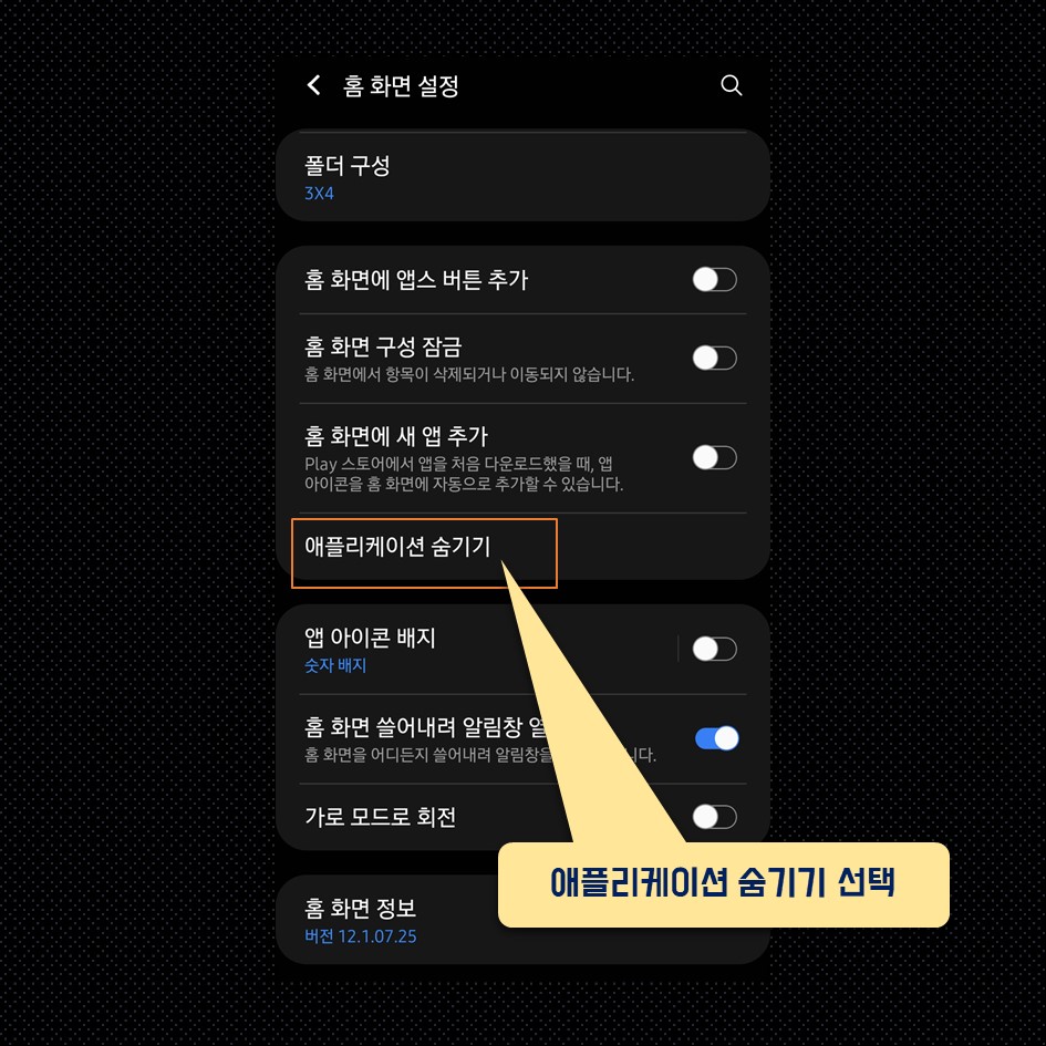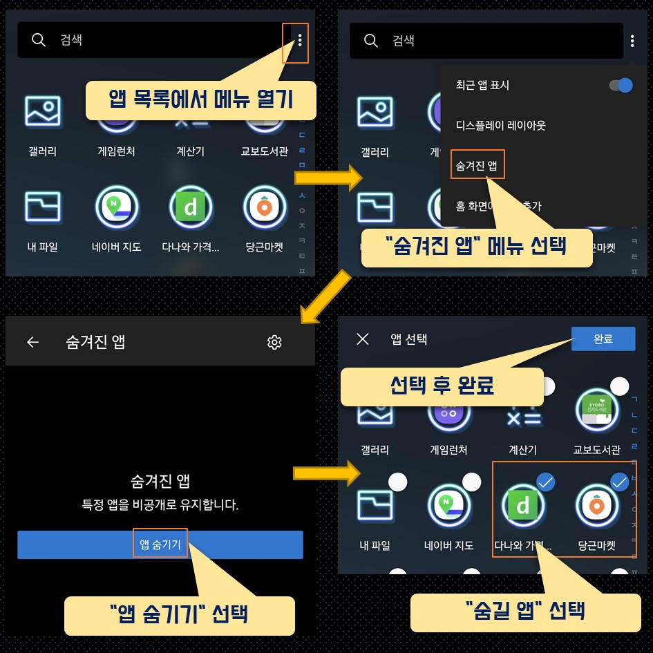 삼성 갤럭시 스마트폰이 아닐 경우 앱 숨기기