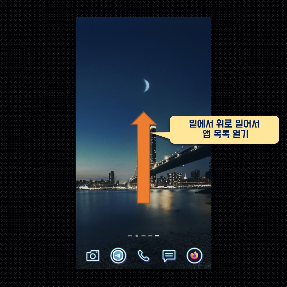 1. 앱 목록 표시를 위해 화면 아래쪽에서 위로 손가락을 문지릅니다.