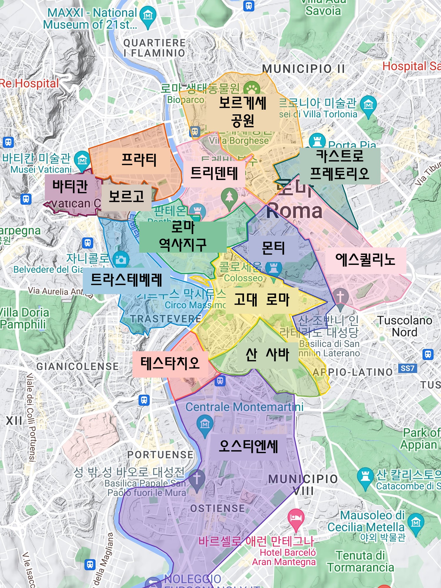 처음 방문하는 사람들에게 로마는 매우 혼잡스러워 보일 수 있습니다. 하지만 로마의 지리에 대해 어느정도 파악하게 되면 로마가 그리 크지 않고 걸어서도 여행할 수 있는 곳이란 것을 알게 됩니다.