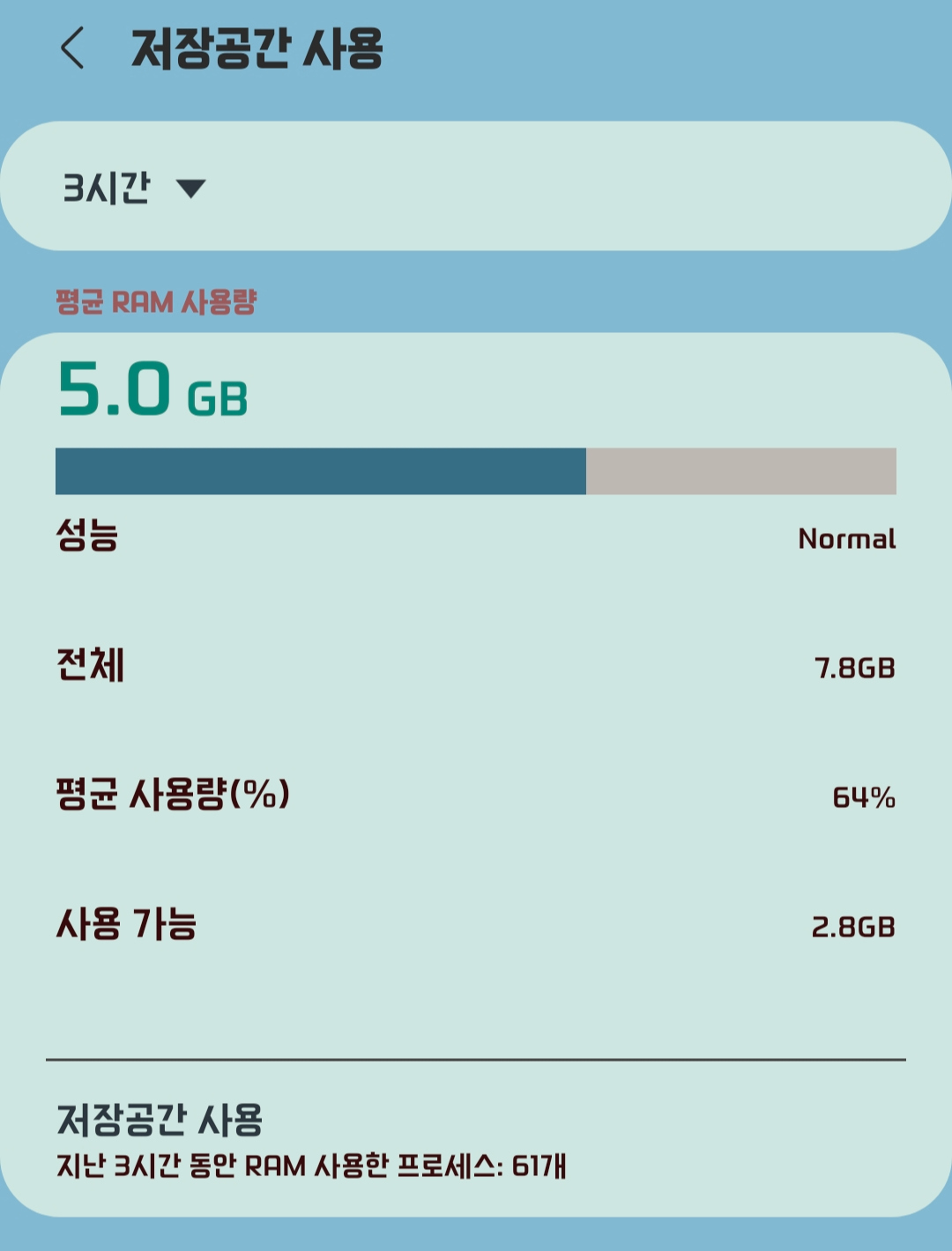 안드로이드 시스템과 구글 플레이에서만 약 1.5GB 의 메모리를 이용하는데 항상 필요한 용량입니다. 배틀그라운드와 같은 고사양의 게임은 1GB 이상의 메모리를 사용하고, 인터넷 브라우저에서 여러 탭을 열어도 1GB 이상의 메모리를 사용합니다.