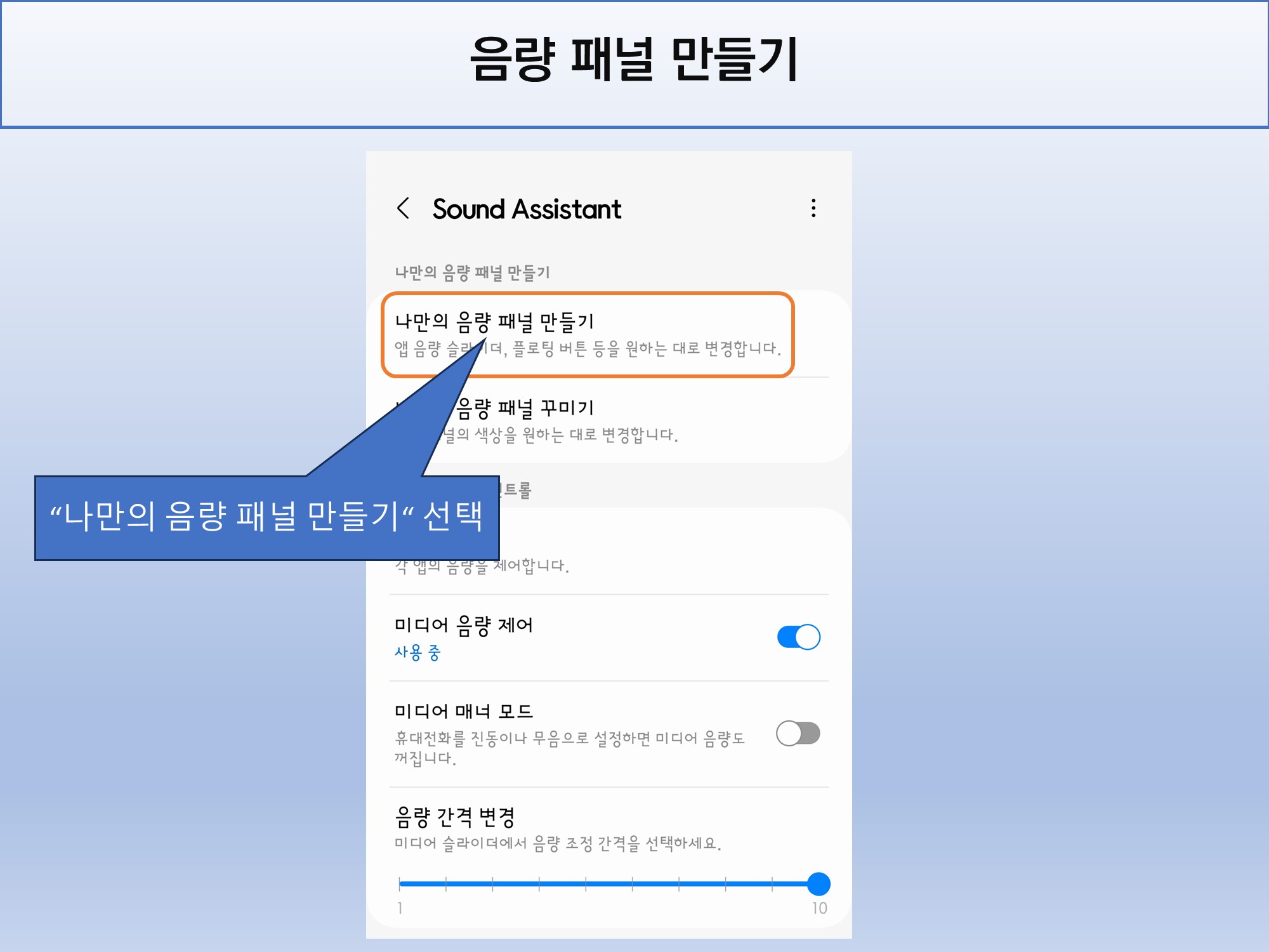 Sound Assistant 에서 “나마의 음량 패널 만들기” 메뉴를 선택합니다.