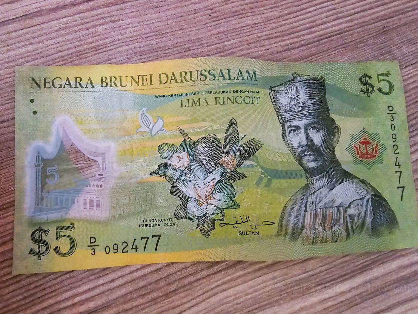 브루나이의 공식 통화는 브루나이 달러(BND)이며, 1 BND = 100 센트로 구성됩니다. 지폐 단위는 $1, $5, $10, $50, $100 가 있고 동전 단위는 1센트, 5센트, 10센트, 20센트, 50센트가 있습니다.