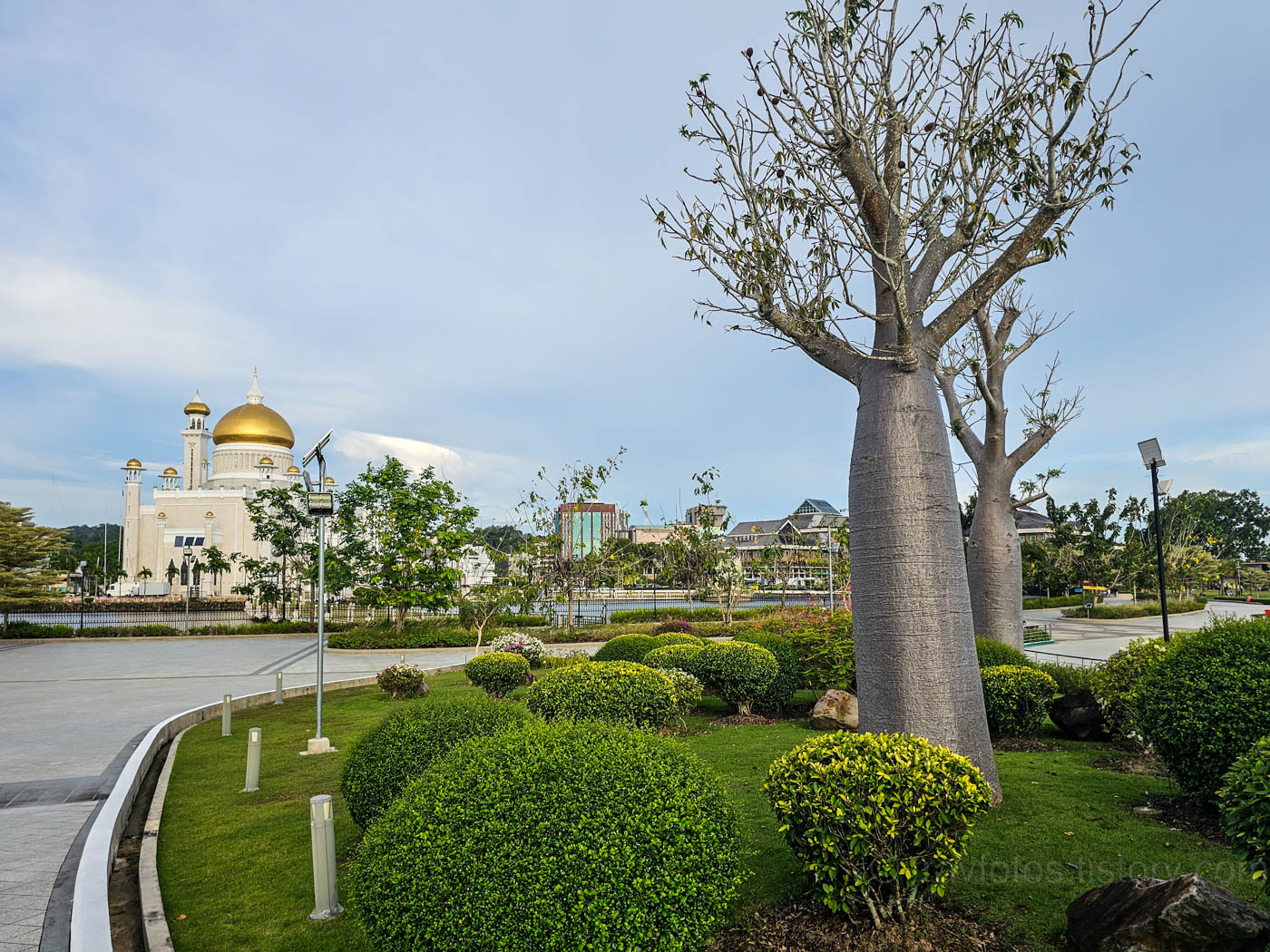 브루나이에서 가장 큰 모스크로, 현재 국왕 하사날 볼키아(Hassanal Bolkiah)의 즉위 25주년을 기념하여 건설되었습니다. 황금빛 돔 29개가 인상적이며, 내부는 화려한 샹들리에와 세밀한 이슬람 문양으로 장식되어 있습니다. 주변 정원도 아름답게 조성되어 있어 평화로운 분위기를 느낄 수 있습니다.